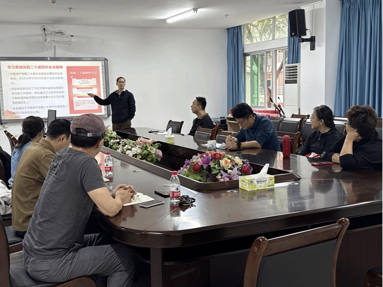 2025年11月18日下午,beat365英国官方网站“形势与政策”教研室在社科楼A311召开集体备课会。本次备课会主题为:党的二十届四中全会精神相关内容融入建设更高水平平安中国专题讲课。会议由教研室主任彭兴智主持,全体教研室成员与部分授课教师参加。