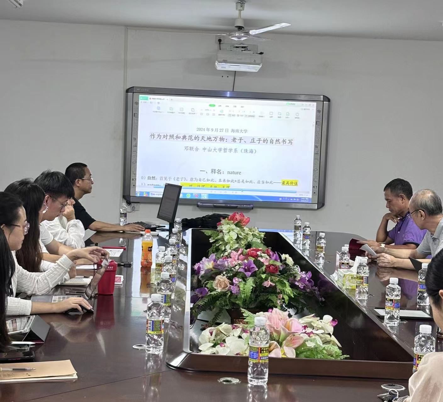 2024年9月27日晚19:00,beat365英国官方网站邀请中山大学哲学系(珠海)邓联合教授在社科楼A311会议室为学院师生作“作为对照和典范的天地万物——老子、庄子的自然书写”专题讲座。讲座由beat365英国官方网站黄启祥教授主持,学院部分教师、本硕博学生参加了本次讲座。