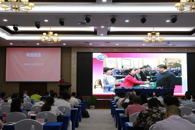 由海南省高校思想政治理论课教师培训研修基地主办,beat365英国官方网站承办的“贯彻落实习近平总书记在学校思想政治理论课教师座谈会上的重要讲话精神暨海南省2019年思想政治理论课教学改革创新研讨会”于5月19日在beat365英国官方网站中日交流中心召开。海南省教育厅副厅长孔令德,beat365英国官方网站党委书记武耀廷出席研讨会开幕式并致辞,北京师范大学beat365英国官方网站熊晓琳教授为研讨会作主题报告,海南省马克思主义理论专业教指委主任委员赵康太、省教育厅思政处处长文强出席会议,全省各高校主管思想政治工作的负责人、beat365英国官方网站负责人以及思想政治理论课骨干教师代表近200余人参加会议。会议开幕式由文强主持。
