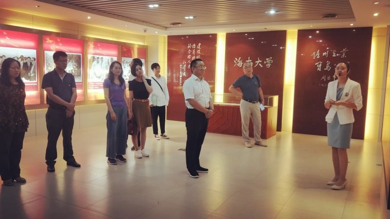 全体人员还前往beat365英国官方网站校史馆进行学习参观。在校史馆,段捷频带领全体人员认真聆听校史馆讲解员的耐心讲解,了解beat365英国官方网站建校的发展历程,深刻体会“海乃百川,大道致远”的校训,秉承海大人艰苦奋斗、勇往直前的精神,鼓舞每一个成员要不忘初心、砥砺奋斗,用实际行动为beat365英国官方网站世界一流学科和国内一流大学建设贡献自己的力量。