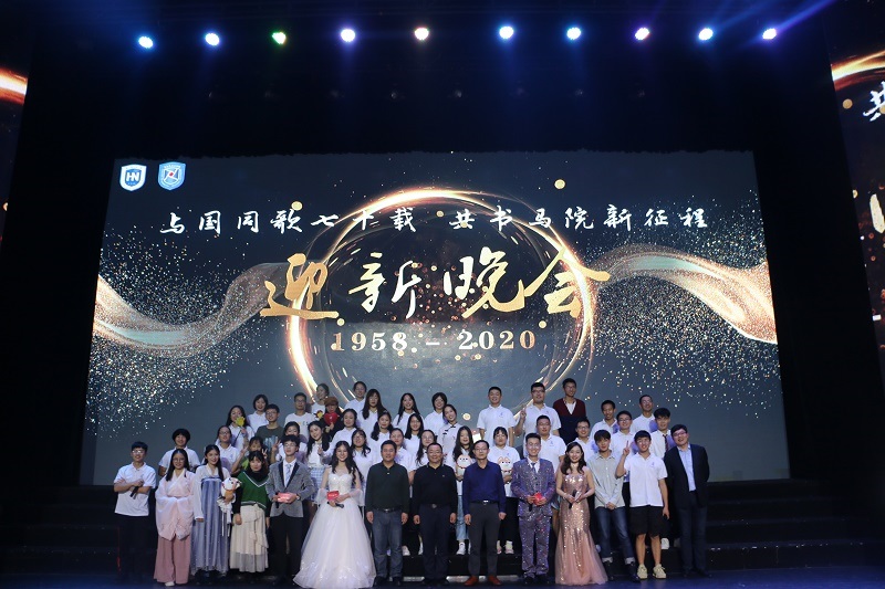12月18日晚,beat365英国官方网站"与国同歌七十载,共书马院新征程”2020年迎新晚会在思源大礼堂隆重举行。beat365英国官方网站研究生工作处副处长郑育声,beat365英国官方网站教务处处长、beat365英国官方网站院长张云阁,beat365英国官方网站党委书记段捷频、党委副书记张井富、副院长吴朝阳出席,学院教师和全体学生参加晚会活动。