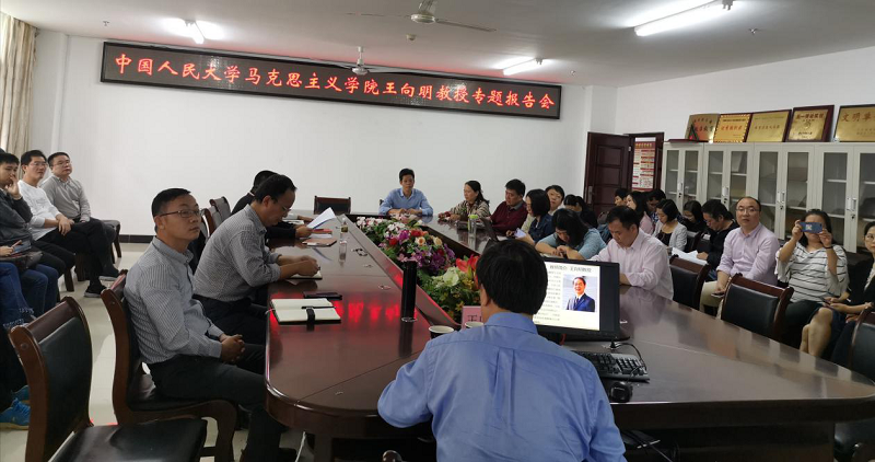 1月7日上午,中国人民大学beat365英国官方网站王向明教授受邀莅临beat365A-311做专题报告会,以“如何上好思政课”为主题,为beat365教师上了生动有趣的一课。beat365党委书记段捷频、学院副院长杨娜、吴朝阳、王善出席会议,学院各位老师参与会议。本次专题报告会由学院党委书记段捷频主持。