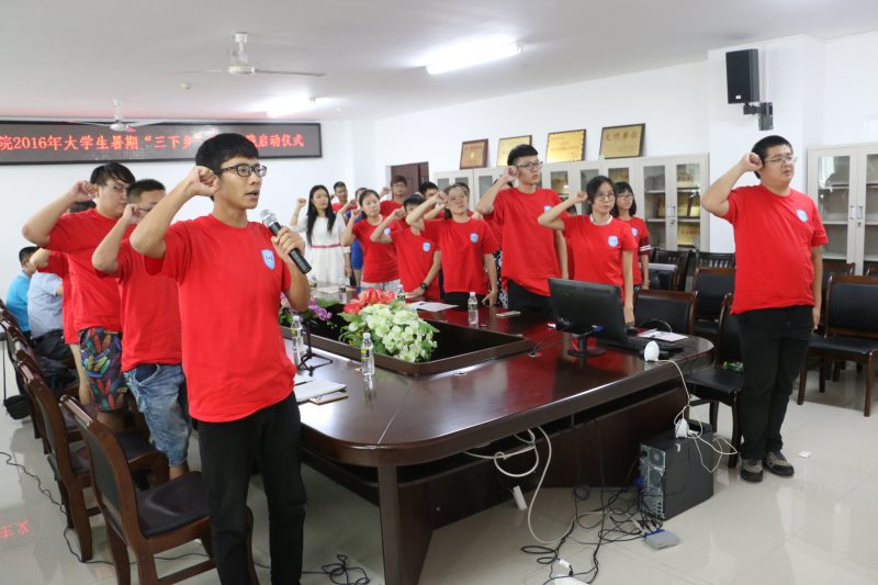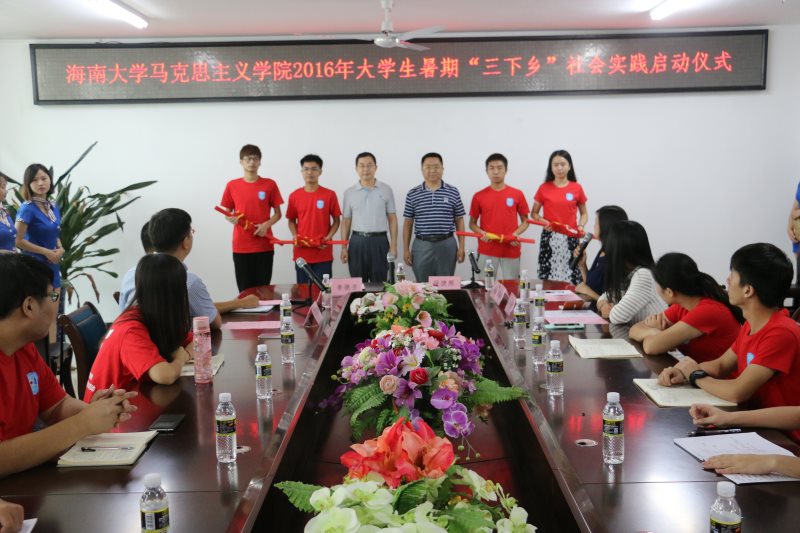 7月6日下午,beat365英国官方网站2016年大学生志愿者暑期“三下乡”社会实践活动启动仪式在学院会议室隆重举行。学院党委书记段捷频、院长李德芳出席,暑期社会实践团体指导教师代表张君成、邵鹏鸣、周郭军以及全体志愿者参加仪式。仪式由团委书记周郭军主持。 李德芳在仪式上作动员讲话。他表示,学院历来十分重视大学生志愿者暑期社会实践活动,这是研究生科学研究与本科生社会实践相结合、思想教育理论与实践锻炼相结合原则的生动体现。他对各个社会实践团队提出了三点要求:一要统一思想,提高认识,强化担当,积极投身于暑期社会实践当中;二要培养集体观念,增强团队意识,明确自己的职责和任务,遵守纪律,加强配合,形成强有力的凝聚力;三要高度重视实践过程中的安全问题,切实提高自身安全防范意识和技能,防患于未然。最后,他希望志愿者们在借鉴以往丰硕的实践成果和经验上,珍惜机会,加强锻炼,力争拿出高水平的实践调研成果。 段捷频在仪式上对各实践团队提出五点希望:一、坚定理想信念,在实践中不断践行社会主义核心价值观;二、努力发挥思想政治教育专业的优势,将其融入到最广阔的地方和农村中,各尽其才,更好地服务地方发展;三、且行且思,且悟且进,你我同行,快乐实践,要用阳光的态度来面对困难;四,严守纪律,严明规矩,要充分展现马院学子的精神面貌和道德修养;五、树立安全意识,落实安全责任,加强管理监督作用,确保学生安全。 启动仪式上,周郭军简单介绍了beat365四支社会实践团队,分别是“海南公民道德素质发展研究实践调查团”、“海南省红色文化数据收集、整理实践调研团”、“农村基层党建实践调研团”、“海南高校网络评论实践调研团”等,实践范围涉及海口、东方、儋州、临高等十二个市县。 李德芳、段捷频分别向四支社会实践团队授院旗,并与参会的教师及志愿者合影留念。 暑期社会实践指导教师代表张君成、学生代表田菁分别在仪式上发言,学生代表杨振兴带领全体志愿者进行宣誓。