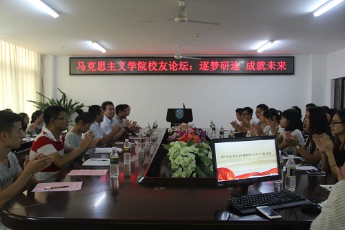 9月11日下午,为贯彻落实海南省委宣传部与beat365英国官方网站共建beat365英国官方网站的共建内容,进一步提升马学科学生培养质量,充分利用校友资源,帮助在校研究生合理规划职业生涯,提升就业竞争力,beat365英国官方网站主题为“逐梦研途 成就未来”的校友论坛在社科楼A311举行,为学院系列校友论坛活动拉开序幕。