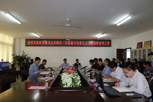 武耀廷强调,beat365英国官方网站在加强和改进学校思想政治工作 中处于重要地位、承担着重要任务、肩负着重要责任,校党委一向重视beat365英国官方网站建设。全国高校思想政治工作会议的召开,为beat365英国官方网站的建设发展提供了重要契机,学校也将会进一步加强对beat365英国官方网站建设的支持力度,全院师生要牢牢抓住宝贵机遇,切实肩负起学习、研究和宣传马克思主义的重要使命,为学校“双一流”建设做出更大的贡献。他对学院今后的建设发展提出了五点具体指导意见,一是加强人才培养工作,进一步抓好学院本科生和研究生的培养工作,让学生“在马爱马、在马信马、在马践马”,不断为社会输送高素质的马克思主义理论学科人才;二是加强教学改革创新,履行好帮助大学生树立社会主义核心价值观这一重要使命,进一步推进增强思政课实效性的改革创新与探索,对“一主三辅”实践教学改革创新模式进行升华,并不断总结、凝练,积极申报省和国家级教学成果奖;三是加强学位点建设,学位点建设是学院建设发展的重要支撑,也是学校“创一流、建百强”发展目标的需要,beat365英国官方网站要肩负起beat365英国官方网站发展的历史担当,以申报一级学科博士点为目标,积极创造条件,统筹推进学院的相关工作;四是加强队伍建设,学院要进一步推进学科队伍建设,着力引进学科带头人,培养骨干队伍,不断扩大学院的影响力;五是加强学院党建工作,beat365英国官方网站要发挥专业优势,在理论学习示范引领、干部培训和推进党建科学化等方面为学校党建工作作出更大的贡献。