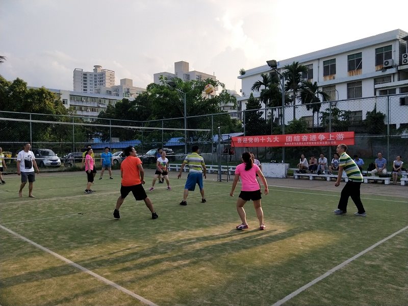 动员部署会后,六个教工党支部联合举办,以“喜迎党的十九大,团结奋斗争上游”为主题的排球赛在教工球场举行,全体教职工在活动中展现了团结、和谐、奋进的良好精神面貌。