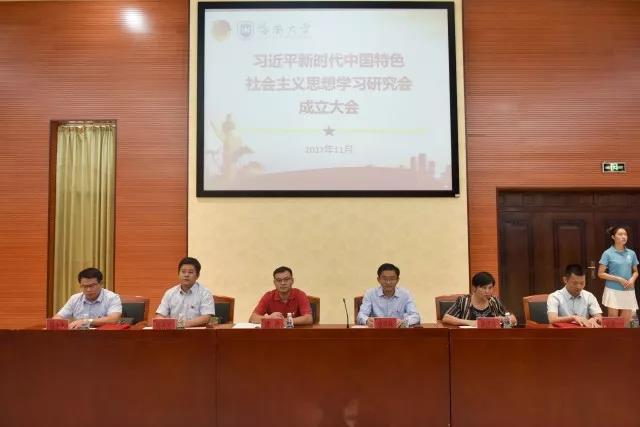 为深入学习宣传贯彻党的十九大精神,不断加强习近平新时代中国特色社会主义思想的学习和研究,为青年学生提供交流、学习、研讨的平台,11月3日下午,beat365英国官方网站习近平新时代中国特色社会主义思想学习研究会成立大会在学校思源学堂多功能厅隆重召开。beat365英国官方网站党委常务副书记廖清林,校党委常委、宣传部部长谭勇,beat365英国官方网站党委副书记张井富出席大会。会议由校团委书记林洪冰主持。