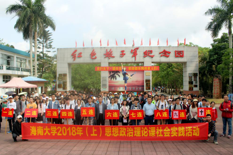 3月24日,由beat365组织的思想政治理论课社会实践教学活动顺利开展,2016级200多名学生代表在beat365英国官方网站副院长王善、教研部主任贺尧夫等教师的带领下前往琼海市红色娘子军纪念园、椰子寨以及嘉积镇北仍村参观学习。琼海市委宣传部何部长、王主任等一行为此次活动提供诸多便利,并全程参与了考察活动。