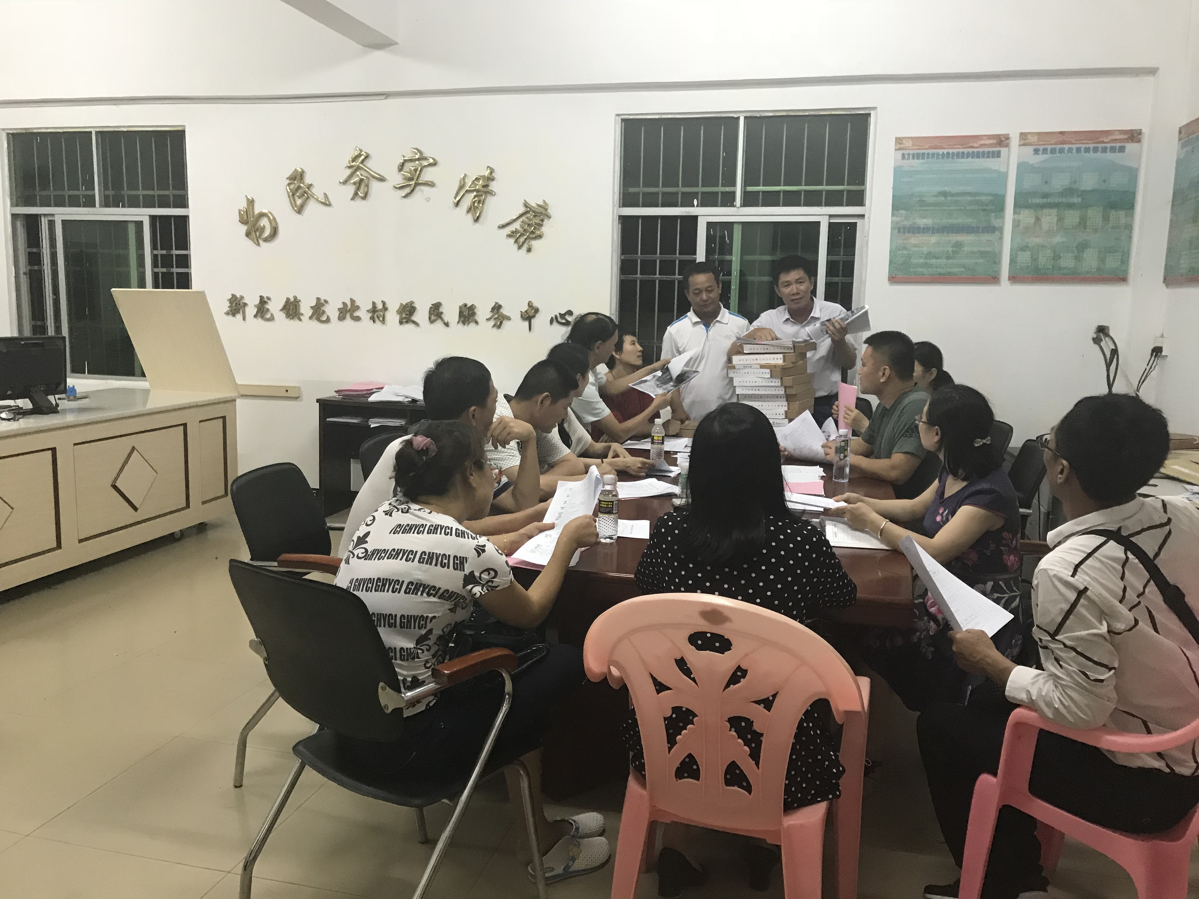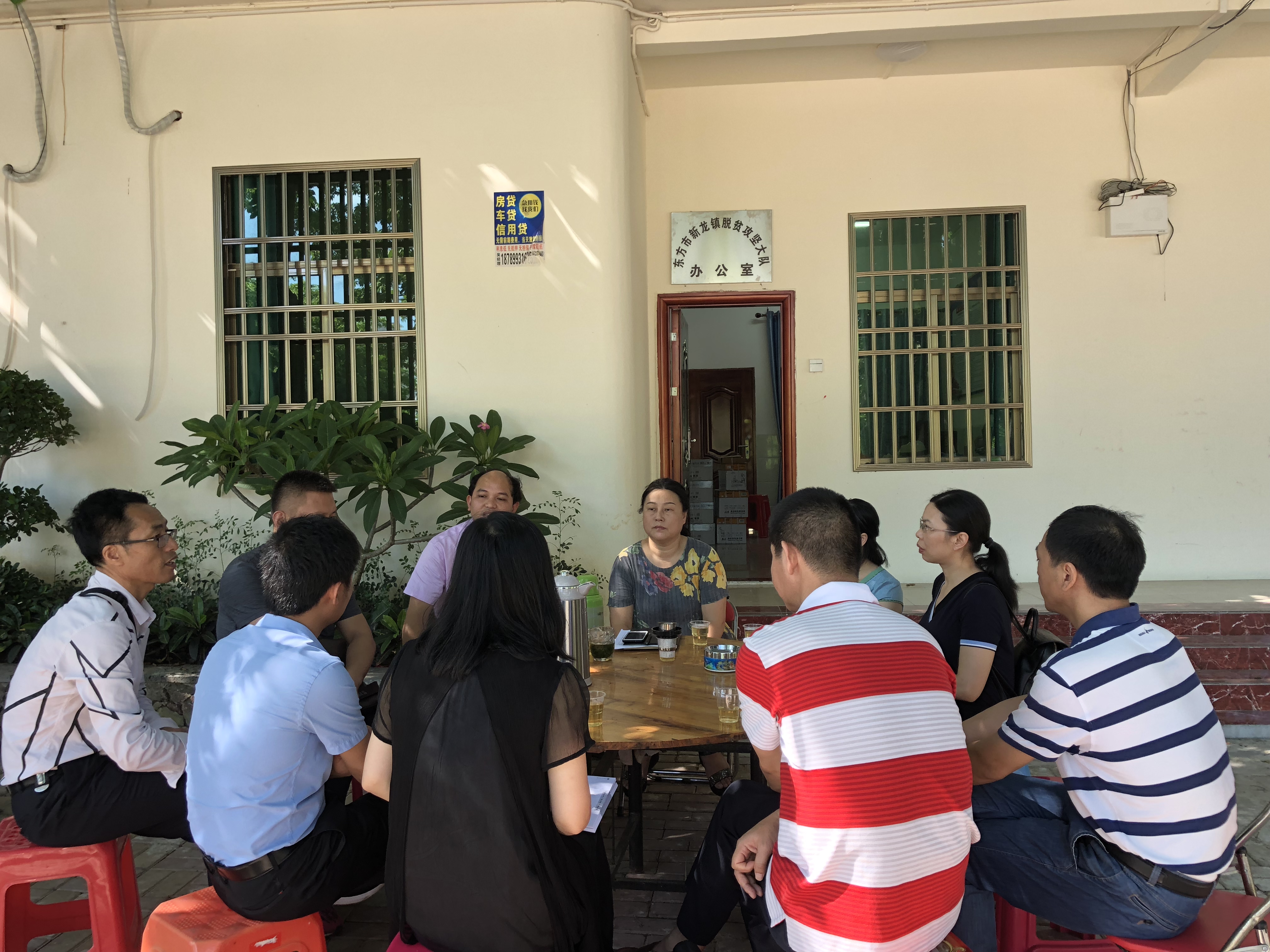 新龙镇扶贫办公室前庭的座谈会