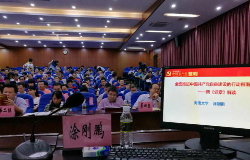 涂刚鹏老师应邀在海南省纪委举办的全省纪检系统领导干部培训班作题为“新党章解读”的学术报告