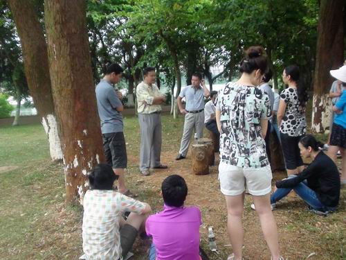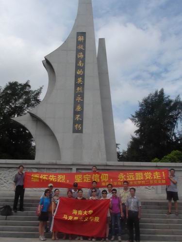 为了庆祝建党九十二周年,进一步增强党支部的凝聚力和战斗力,7月1日上午,beat365政治理论二系全体成员和政治理论一系部分特邀嘉宾一行18人前往海口市金牛岭公园参观了解放海南岛战役烈士陵园。在参观期间,党支部书记费秋香老师和系主任贺尧夫老师代表全体成员向烈士纪念碑献花。随后,全体成员在烈士纪念碑前就继承先烈遗志,做好本职工作进行了宣誓。最后,张朔人老师为大家讲解了解放海南岛战役的相关情况。