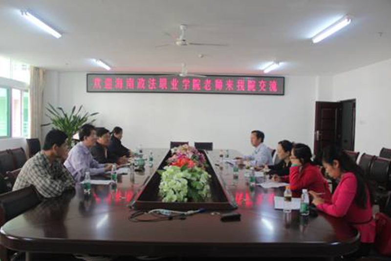 11月29海南政法职业学院社科部陈焕随副主任等一行多人,就当前思想政治理论课教学方法改革与beat365教师进行交流。院党委书记梁谋主持座谈交流会。