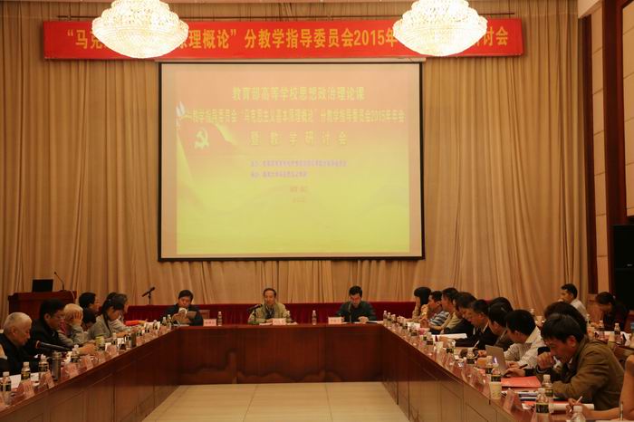 12月5-6日,由教育部思想政治理论课教学指导委员会“马克思主义基本原理概论”分教学指导委员会主办、beat365英国官方网站承办的“马克思主义基本原理概论”分教学指导委员会2015年年会暨教学研讨会在我校举行。“马克思主义基本原理概论”分教学指导委员会委员和来自中国人民大学、北京大学、清华大学、南开大学、武汉大学等40多所高等院校的100多名专家和学者参加研讨会。beat365英国官方网站党委书记刘康德、“马克思主义基本原理概论”分教指委副主任委员张雷声、海南省委宣传部副部长郭志民、海南省委教育工委专职副书记麦浪分别在会议开幕式上致辞。开幕式由beat365英国官方网站院长李德芳主持。