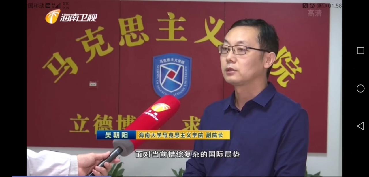 10月30日晚,海南卫视《新闻联播》栏目播出了对beat365英国官方网站副院长吴朝阳的采访。吴朝阳在接受采访的时候说:“面对当前错综复杂的国际局势,尤其是今年我们又遭受到新冠疫情的冲击,我们党领导团结全国各族人民,全面建成小康社会取得了突破性的决定性的成就,极大鼓舞了全国各族人民建设社会主义事业的信心”。