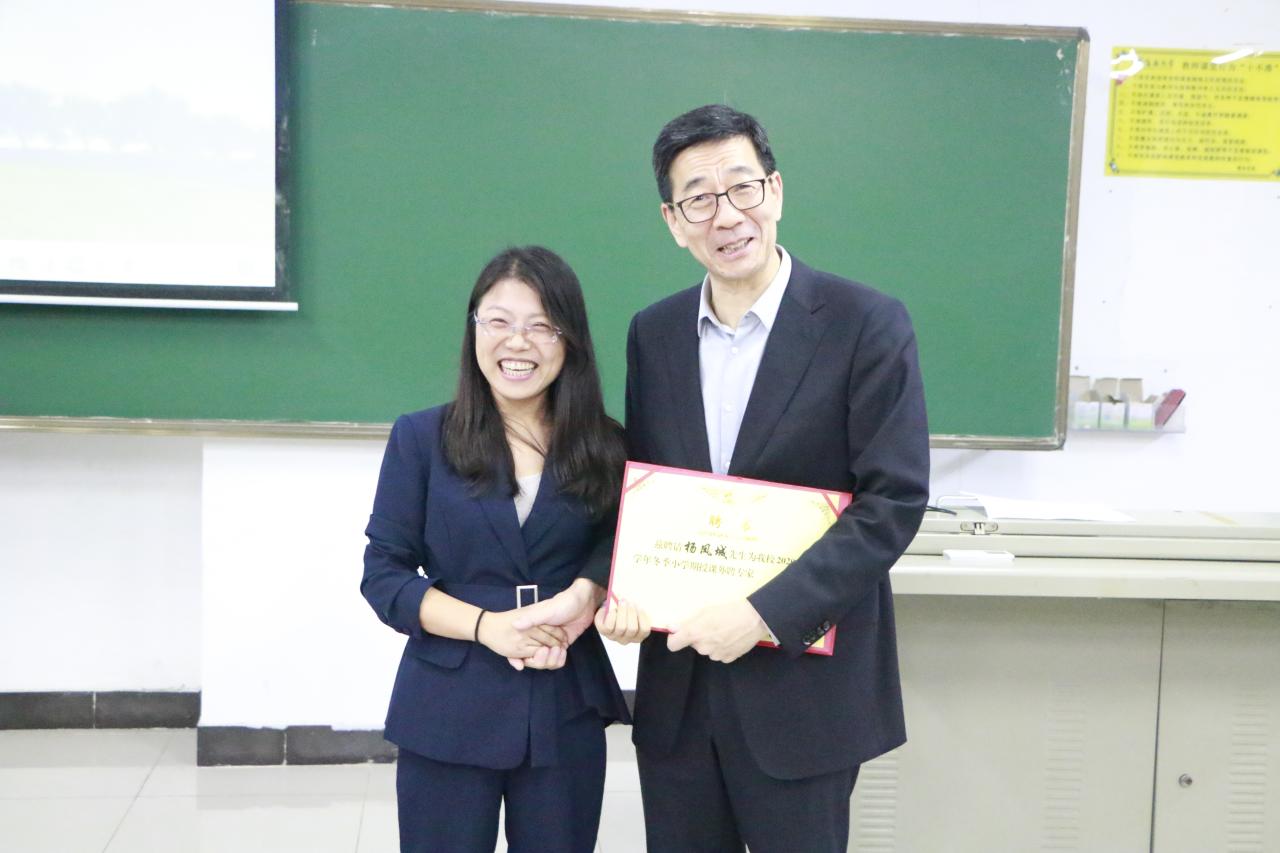 2020年12月11日晚,beat365英国官方网站2020-2021学年冬季小学期系列讲堂第二讲在五号教学楼114教室举行。中国人民大学杨凤城教授应邀为beat365学生作以“中国共产党的文化观与文化发展战略”为主题的学术报告,副院长杨娜出席并为杨凤城教授颁发了beat365英国官方网站“冬季小学期授课外聘专家”证书。