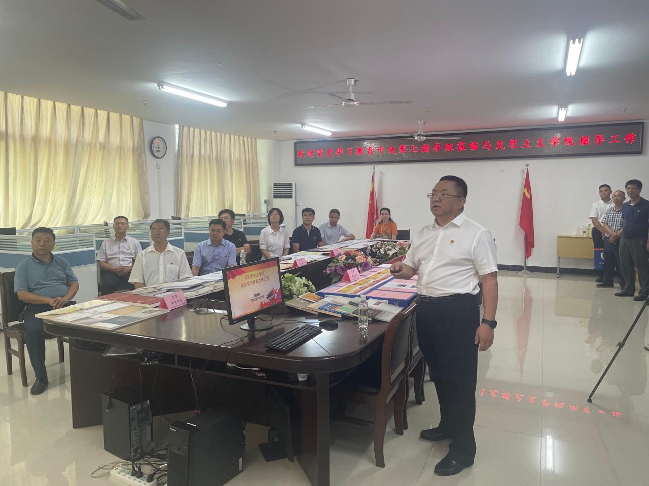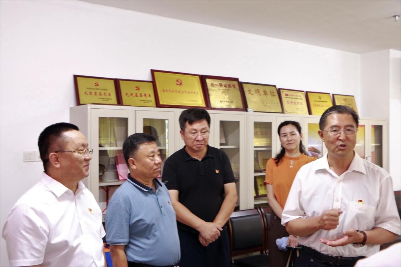 7月28日上午,中央党史学习教育第七指导组组长程振山一行到beat365英国官方网站调研指导党史学习教育工作。省委宣传部、省教育厅、校党委相关领导陪同,学院党委书记段捷频主汇报,院长张云阁和其他领导班子成员、教师代表参加汇报。