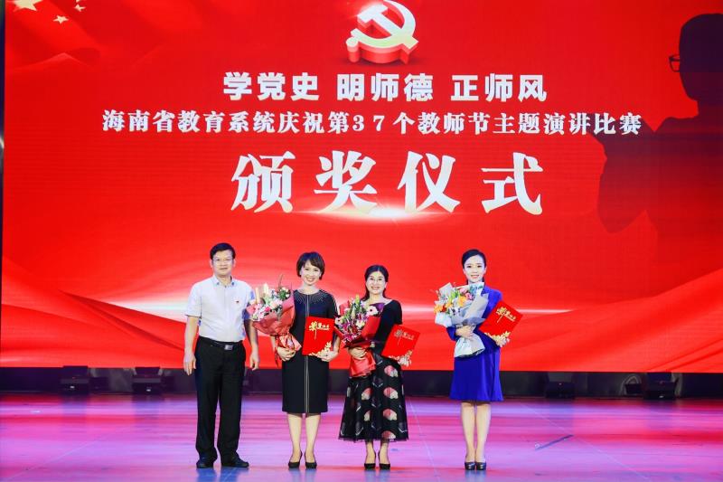 9月8日-9日,由海南省教育厅主办的海南省教育系统庆祝第37个教师节主题演讲比赛在海南中学艺术中心举行。海南省人民政府副秘书长赖泳文,海南省教育厅党委书记、厅长曹献坤等领导出席。beat365教师于赫以全场最高分荣获一等奖。