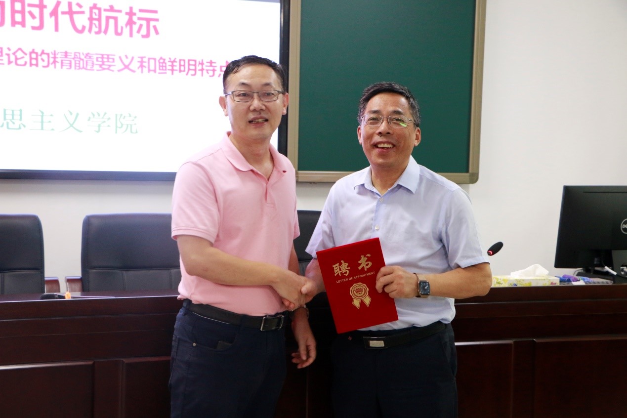 9月29日上午,beat365英国官方网站2021-2022学年冬季小学期系列讲堂第一讲在社科楼A309举行。南京师范大学王永贵教授应邀为beat365学生作以“习近平总书记文化强国理论及鲜明特点”为主题的学术报告,副院长吴朝阳出席报告会并为王永贵教授颁发beat365英国官方网站“冬季小学期授课外聘专家”证书。