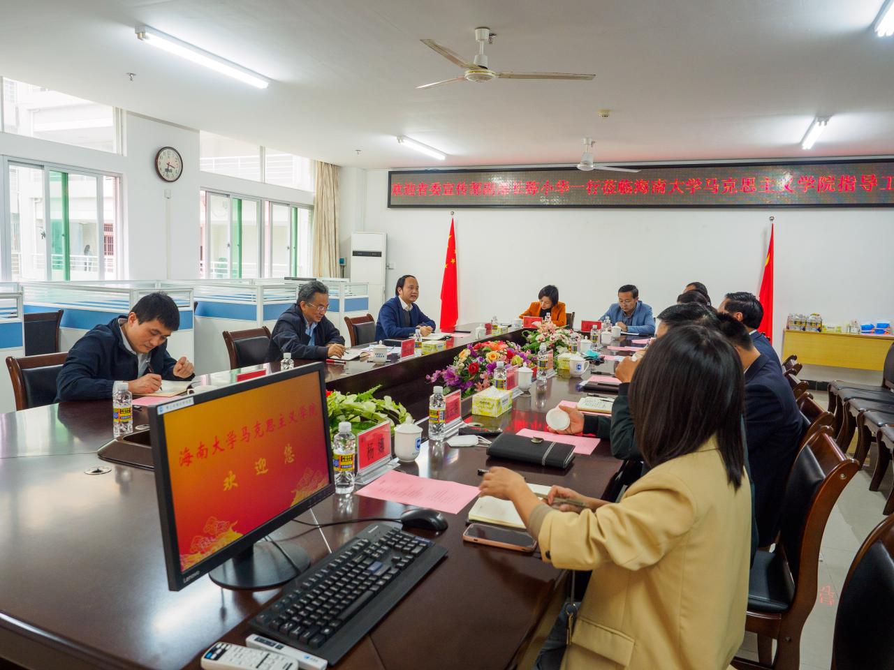 2月20日下午,海南省委宣传部副部长陈小华一行到beat365英国官方网站调研。beat365英国官方网站党委书记符宣国,党委常委、副校长高佃恭,党委常委、宣传部部长韩淑梅出席,beat365英国官方网站领导班子成员参加会议。会议由符宣国书记主持。