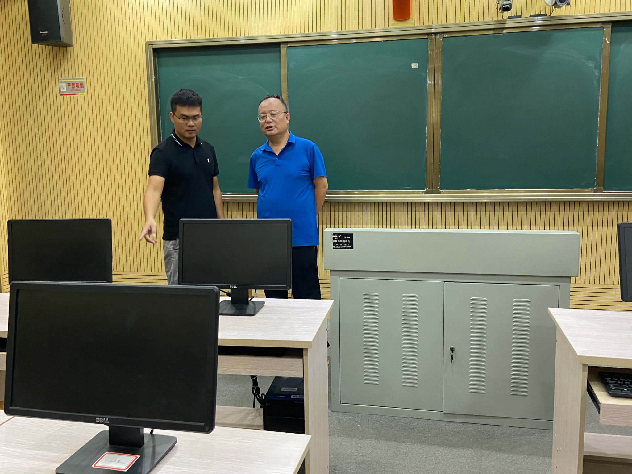 根据《beat365英国官方网站实验室与设备管理处关于进一步落实院级单位实验室安全职责的通知》(海大实〔2023〕48号)要求,为了确保学院现代传媒与思想政治教育实验室安全运行,切实做好实验室的安全检查以及安全隐患排查工作,2023年10月31日,学院副院长王善带领实验室管理员对实验室进行了常规安全检查工作。