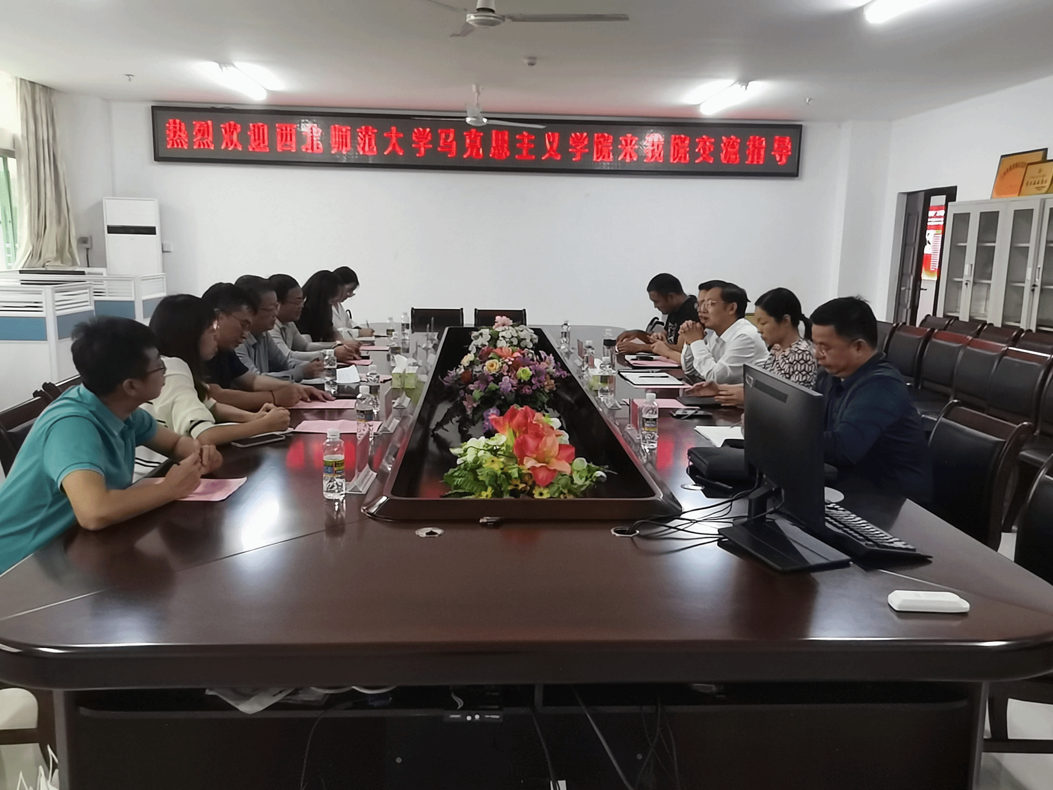 11月21日15:30,西北师范大学beat365英国官方网站副院长孙健一行7人,在学院309会议室与我院部分思政课教师开展教研交流活动。本次会议由学院副院长吴朝阳老师主持。