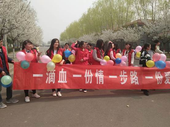 2016年3月18日11:30―12:30,必赢国际437官网编外雷锋营联合各院系编外雷锋连在学校新餐厅前的广场前举行了以“捐献可以再生的血液,拯救不可重来的生命”为主题的彩虹跑公益活动。