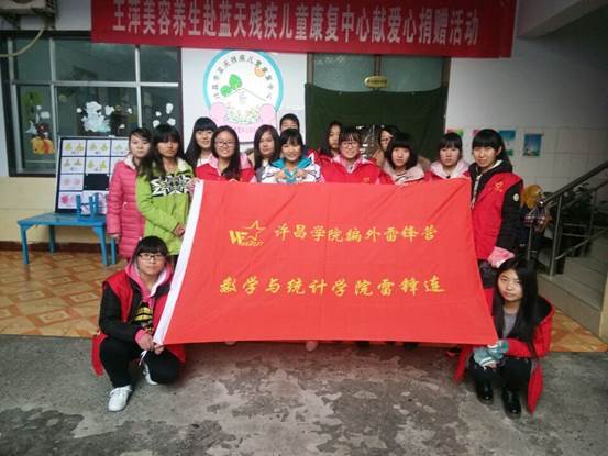 2015年11月27日下午两点,必赢国际437官网数学与统计学院编外雷锋连由程玉博、徐琰带队共计16名大学生志愿者前往蓝天儿童康复中心做志愿服务。