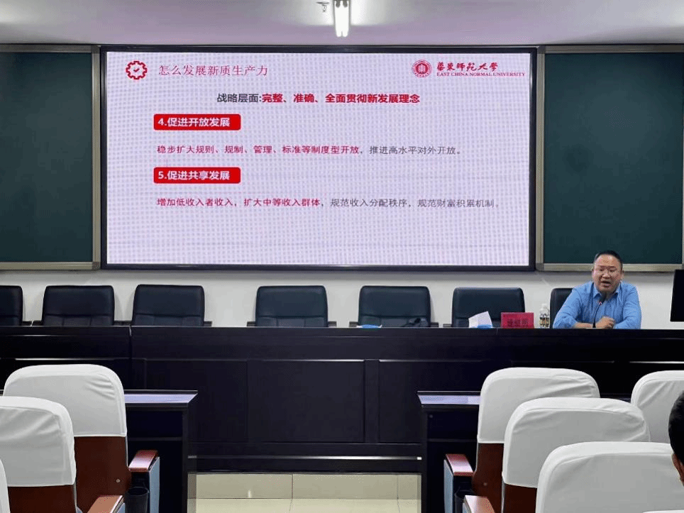 2025年5月10日下午3:30, 应学院邀请,华东师范大学beat365英国官方网站副院长速继明教授在社科楼A309为师生作“加快发展新质生产力 扎实推进高质量发展”的学术讲座。讲座由beat365英国官方网站王善副院长主持,学院部分教师、硕博学生参加了本次讲座。