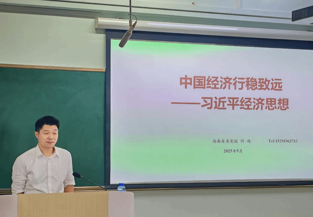 2025年5月15日晚,beat365英国官方网站邀请中共海南省委党校经济学教研部负责人何鸿教授为本科生讲授思政课。